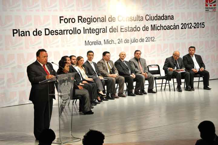 Con el fin de incluir la opinión y propuestas de los michoacanos de todas las regiones, este martes se realizó en la capital del estado el último de los Foros de Consulta Ciudadana para la Integración del Plan de Desarrollo Integral 2012-2015, donde el edil moreliano fue el encargado de dar la bienvenida a los asistentes.