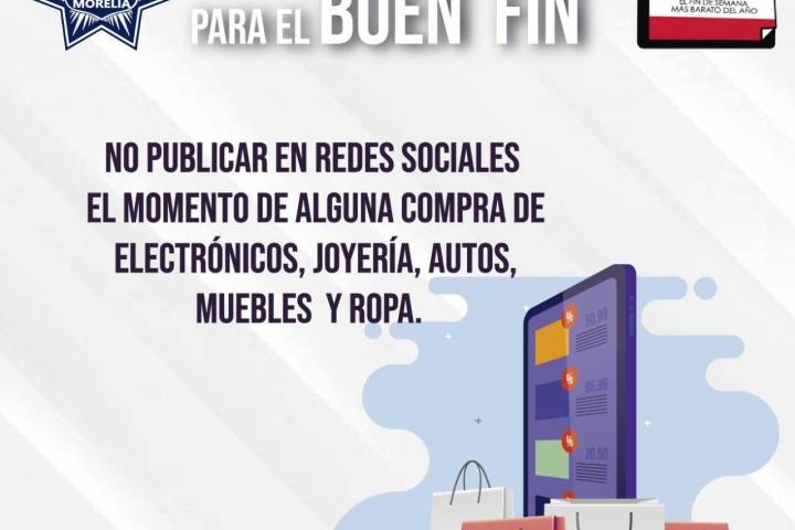 NOTICIAS 15/11/2019Aplica PolicÃa Morelia operativo especial por el Buen Fin 2019A fin de garantizar la seguridad de los morelianos durante este Buen Fin 2019, como instruyó el Presidente Municipal Raúl Morón Orozco, la PolicÃa de Morelia en coordinación con la PolicÃa Michoacán, FiscalÃa General del Estado y Guardia Nacional, arrancó un operativo de vigilancia, en donde participarán más de 500 uniformados, mismos que se desplegarán en las inmediaciones de centros comerciales asà como en establecimientos mercanti... Ver más...