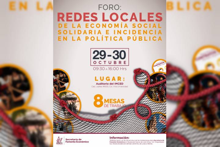 NOTICIAS 07/10/2019Gobierno de Morelia impulsará foro para emprendedores organizados o colectivosLa Secretaría de Fomento Económico de Morelia, que dirige su titular Gabriela Molina Aguilar a través de la Dirección de Economía Social y Solidaria invita al Foro Redes Locales de la Economía Social Solidaria e Incidencia en la Política Pública, que se realizará los días 29 y 30 de octubre, en el Auditorio del IMCED, ubicado en Calzada Juárez, 1600, en Villa universidad.