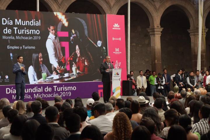 NOTICIAS 27/09/2019Llama Rául Morón a fortalecer lazos por el progreso de Morelia a través del turismoCon una invitación a reflexionar la relación de la actividad con la generación de empleo y bienestar en la sociedad, al identificarla como generadora de riquezas y desarrollo, el presidente municipal de Morelia, Raúl Morón Orozco, marcó su participación en el evento conmemorativo por el Día Mundial de Turismo, el cual se celebró esta mañana en las instalaciones del Palacio de Gobierno.