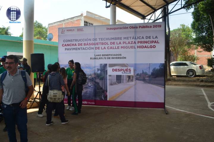 Durante un evento encabezado por el presidente municipal de Morelia, Raúl Morón Orozco, se informó que la obra consiste en la construcción de una techumbre metálica de la cancha de básquetbol de la plaza principal y pavimentación de la calle Miguel Hidalgo que conecta a 6 de los tres barrios de la tenencia.