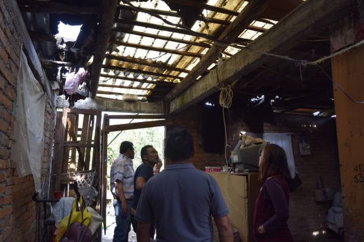 Por ello, el titular de la dependencia, Roberto Reyes Cosari, visitó la Tenencia Morelos, en donde se brindó atención a cerca de 30 familias afectadas, principalmente por la caída de techumbres en vivienda y zonas de trabajo.