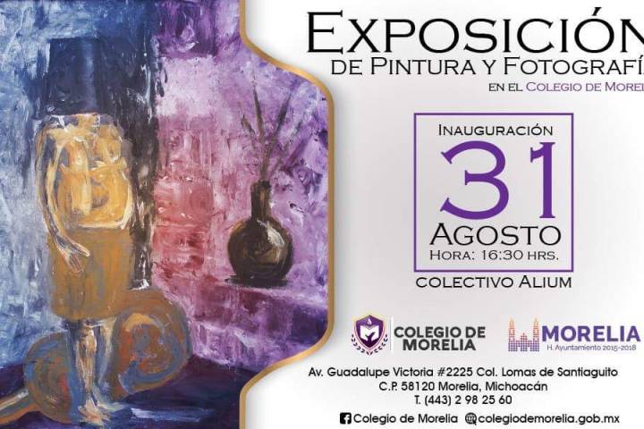 NOTICIAS 27/08/2018Colegio de Morelia presentará exposición "Blanco y Negro" este 31 de agosto Con el propósito de brindar espacios de recreación y respaldar la producción de artistas en ciernes, el Colegio de Morelia abrirá sus puertas para la exposición "Blanco y Negro" a cargo del colectivo artÃstico Alium en las instalaciones de esta dependencia municipal a partir de este viernes 31 de agosto.