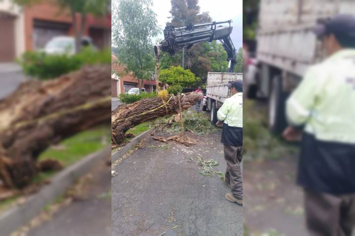 La mencionada área informó que dicho árbol tipo fresno y de gran altura no causó algún tipo de daño y que la razón de su caída fue porque su base se encontraba po... Ver más...