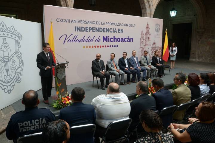 NOTICIAS 22/05/2018Conmemoran el CXCVII Aniversario de la Promulgación de la Independencia en Valladolid de MichoacánCon un llamado a conmemorar 197 años de este hecho histórico, honrar a sus héroes y seguir su ejemplo, el Ayuntamiento de Morelia realizó la Ceremonia Cívica Conmemorativa del CXCVII Aniversario de la Promulgación de la Independencia en Valladolid de Michoacán, evento que tuvo como sede el patio central de Palacio Municipal este martes 22 de mayo.