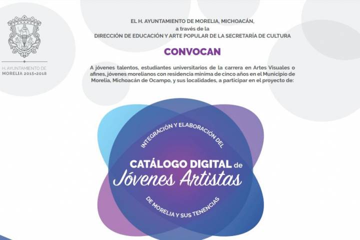 NOTICIAS 20/05/2018Jóvenes pueden participar en integración y elaboración de Catálogo de Artistas El Ayuntamiento de Morelia, a través de la Secretaría de Cultura Municipal, recuerda a los jóvenes de entre 17 y 24 años con al menos cinco años de residencia en la ciudad, que pueden participar en la integración y elaboración del "Catálogo Digital de Jóvenes Artistas", cuyas bases pueden ser revisada en el sitio ww.morelia.gob.mx.