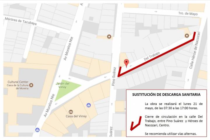 Por lo anterior, será necesario realizar el cierre total de la vialidad, entre las calles Pino Suárez y Héroes de Nacozari, de manera que se llama a la ciudadanía a tomar precauciones y planificar s... Ver más...