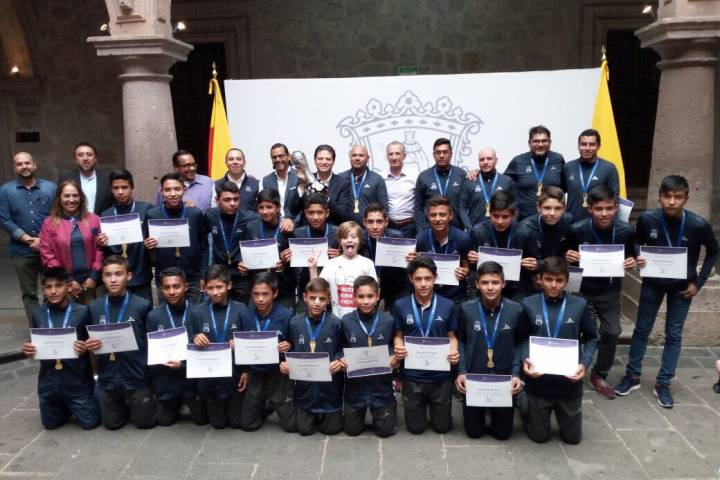 NOTICIAS 13/04/2018Reconoce Alfonso a jugadores de Monarcas Morelia ganadores del Campeonato Sub-13El Presidente Municipal, Alfonso Martínez Alcázar, reconoció la tarde de este viernes, el esfuerzo, la dedicación y "el corazón que han dejado en la cancha", los jóvenes jugadores de Monarcas Morelia que recientemente se alzaron con la victoria en el Torneo Sub 13 Primavera 2018 de la Liga Bancomer MX.