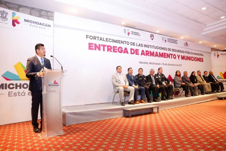 NOTICIAS 15/12/2017Con entrega de armamento y municiones, Gobierno de Michoacán fortalece instituciones de seguridad Gracias a la gestión ante la Secretaría de la Defensa Nacional (Sedena), el Gobierno del Estado, a través de las secretarías de Gobierno y de Seguridad Pública (SSP), así como del Secretariado Ejecutivo del Sistema Estatal de Seguridad Pública (SESESP), entregó hoy armas de fuego, cargadores y municiones a policías de 12 municipios de Michoacán, con una inversión de 3 millones 618 mil pesos.