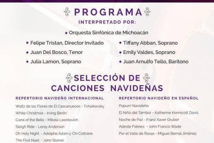 Todo está listo para que los morelianos disfruten esta noche del 3er. Concierto Navideño "Música por una Sonrisa", que realiza el Gobierno de Morelia a través del Sistema DIF Municipal, precedido de forma honoraria por Paola Delgadillo de Martínez, evento de gran nivel dirigido a toda la familia, en donde podrán escuchar un repertorio musical internacional, así como canciones en español bien conocidas por la ciudadanía como El Niño de... Ver más...