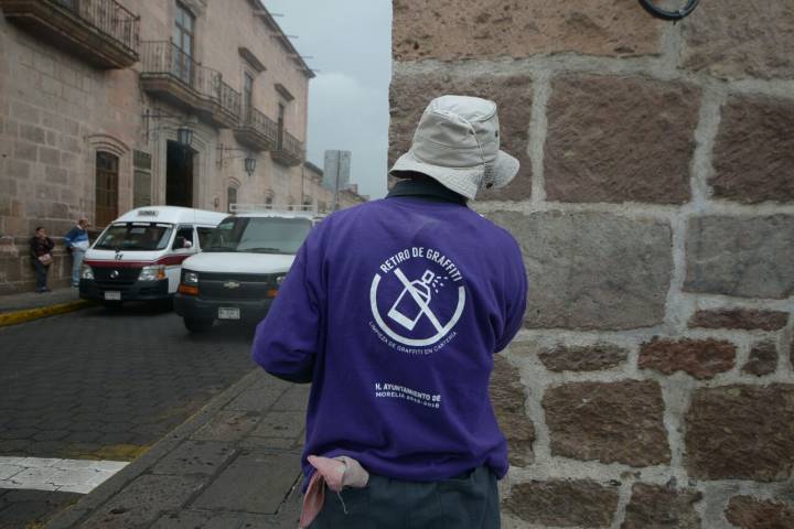 NOTICIAS 29/08/2017Intensifica Gerencia del Patrimonio Cultural acciones de retiro de grafiti Con el objetivo de fortalecer y dar mantenimiento a los inmuebles del Centro Histórico retirando las pintas que se encuentran en diversos puntos de la capital, la Gerencia del Patrimonio Cultural de Morelia mantiene operativos con cuadrillas de retiro de grafiti en el Primer Cuadro de la ciudad.