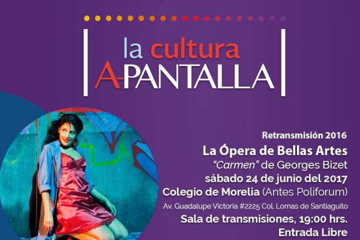 NOTICIAS 23/06/2017Este sábado, Morelia lanzará programa "La Cultura A-pantalla" A partir de este sábado, morelianos y visitantes tendrán la oportunidad de disfrutar de manera totalmente gratuita de lo mejor de la danza, el teatro, la ópera y las orquestas sinfónicas de diversas agrupaciones artísticas nacionales e internacionales, a través del programa "La Cultura A-pantalla".