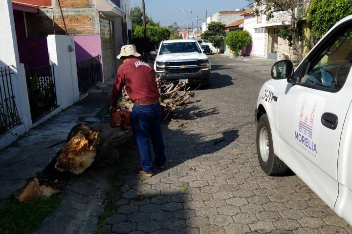 NOTICIAS 09/06/2017Supervisa Ayuntamiento de Morelia condición de árboles en la ciudad El Ayuntamiento de Morelia, a través de la Coordinación de Protección Civil y de Bomberos y la Secretaría de Servicios Públicos municipales, atiende de manera inmediata y oportuna el derribo de árboles y ramas en la capital michoacana, en aras de evitar incidentes en esta temporada de lluvias.