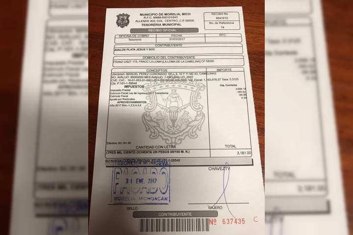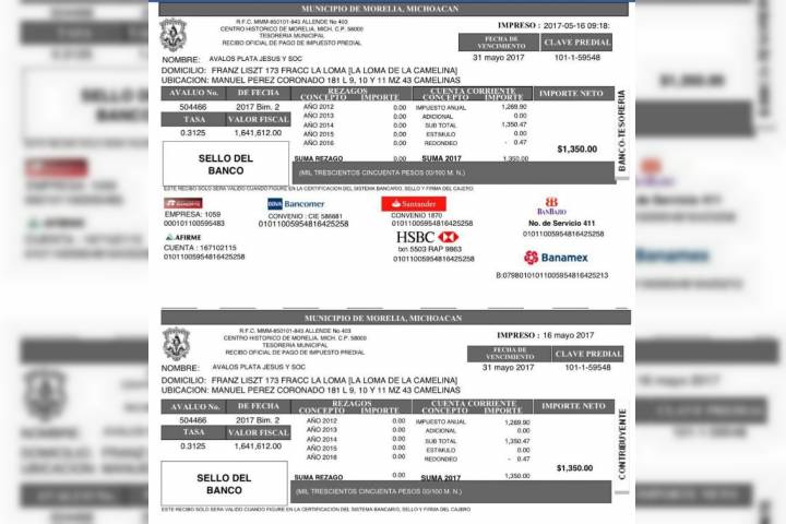 NOTICIAS 23/05/2017Privilegios en pago de predial; Secretario del Ayuntamiento de Morelia no pagó lo que debía Luego de que fue ventilada en las redes sociales la deuda de Alfonso Martínez Alcázar y Jesús Ávalos Platas con el municipio, por no pagar el predial correspondiente a un lapso de seis años, aparece el recibo pagado del secretario.
