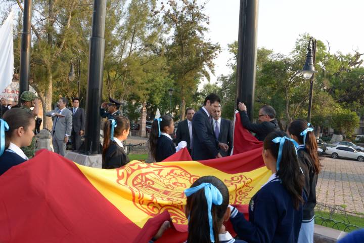 Teniendo de fondo el monumento ecuestre a José María Morelos y ante el Presidente ... Ver más...