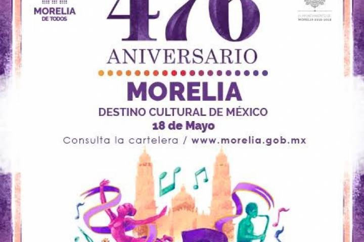 NOTICIAS 17/05/2017Este jueves, Morelia se vestirá de gala al celebrar el 476 Aniversario de su fundación Con bombo y platillo, este 18 de mayo Morelia celebrará el 476 Aniversario de su fundación, por lo que el Ayuntamiento capitalino, a través de su Secretaría de Turismo municipal, tiene preparadas actividades cívicas, culturales y artísticas para que los morelianos festejen en grande a su ciudad.