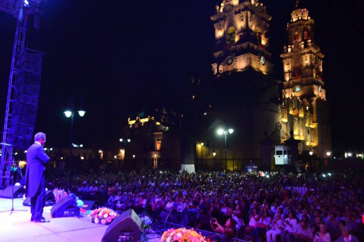NOTICIAS 19/05/2017Pletórico cierre del 476 Aniversario de MoreliaEl tenor, Fernando de la Mora en Morelia causó gran impresión, tanto para los que ya lo conocían como para los que no, con su potente voz interpretó boleros, danzón y música mexicana, la cual en su mayoría fue repertorio conocido para la audiencia.