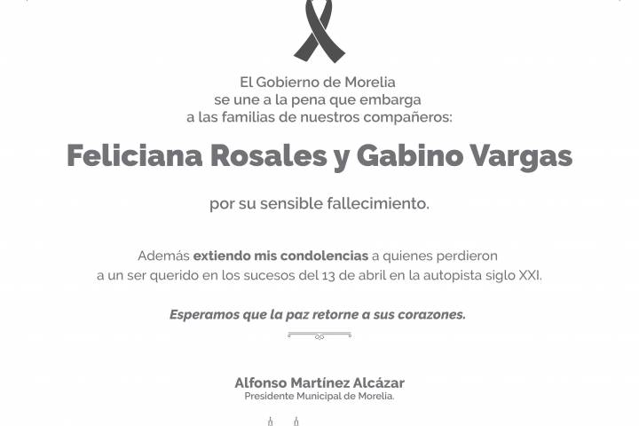 NOTICIAS 14/04/2017Gobierno de Morelia refrenda apoyo a víctimas y familiares de accidente carretero El Gobierno Municipal de Morelia, refrenda todo el respaldo a las víctimas y familiares del accidente registrado el pasado jueves en la Autopista Siglo XXI, por lo que se mantiene atento de cualquier apoyo tendiente a los gastos funerarios o médicos que requieran.
