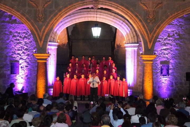 NOTICIAS 14/04/2017Palacio Municipal vibra con el Coro de los Niños CantoresCon una presencia de más de 300 personas, el Ayuntamiento de Morelia a través de la Secretaría de Turismo, llevó con gran éxito un concierto musical de los Niños Cantores de Morelia en donde el Palacio Municipal fue sede de este evento.