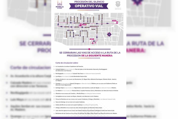 NOTICIAS 11/04/2017Anuncia Ayuntamiento de Morelia operativo vial por Procesión del Silencio El Ayuntamiento, a través de la Policía de Morelia, invita a la ciudadanía a tomar medidas de precaución por los cierres al tránsito vehicular que se efectuarán el viernes 14 de abril, con motivo de la tradicional Procesión del Silencio.
