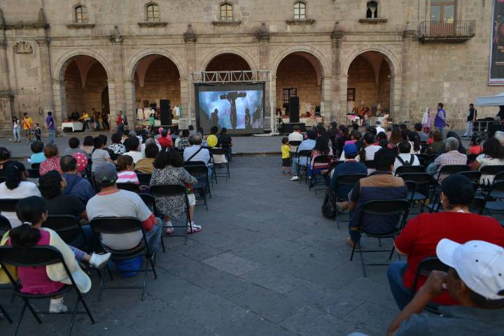 NOTICIAS 12/04/2017Morelianos disfrutan película en la Plaza ValladolidEn un ambiente familiar, morelianos disfrutaron este miércoles de la película "La Resurrección de Cristo", en la Plaza Valladolid, evento que organizó el Ayuntamiento de Morelia, a través de la Gerencia del Patrimonio Cultural de la ciudad, en el marco del Programa de actividades de Semana Santa.