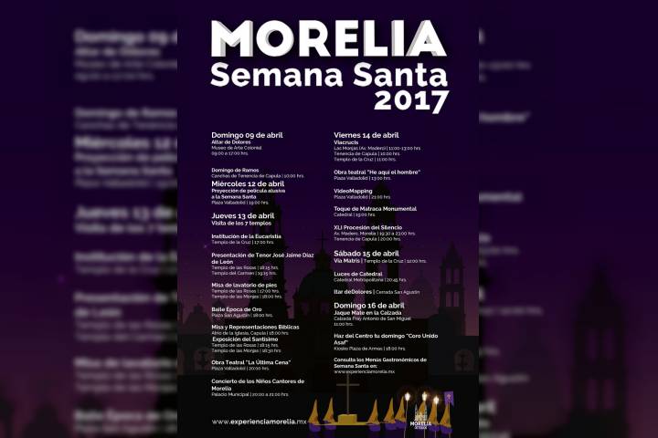 NOTICIAS 09/04/2017Morelia, lista para recibir a visitantes en Semana SantaEn aras de seguir posicionando a Morelia como uno de los principales destinos culturales del país, el Gobierno Municipal, que preside el Alcalde, Alfonso Martínez Alcázar, ostenta un atractivo y nutrido programa de actividades para este periodo vacacional de Semana Santa, donde niños, jóvenes y adultos podrán disfrutar de más de 40 eventos en todo el Primer Cuadro de la ciudad.