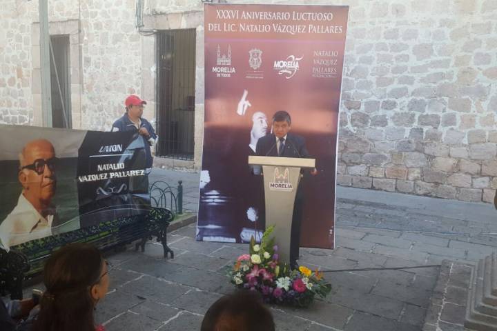 Autoridades municipales honran la memoria de Natalio Vázquez Pallares, quien cumplió 36 años de muerto, y por ello, junto con su hija Xóchitl Vázquez, hicieron el tradicional acto que año con año se celebra en el busto del héroe, el cual se localiza a un costado de la Biblioteca Pública de la Universidad Michoacana de San Nicolás de Hidalgo.