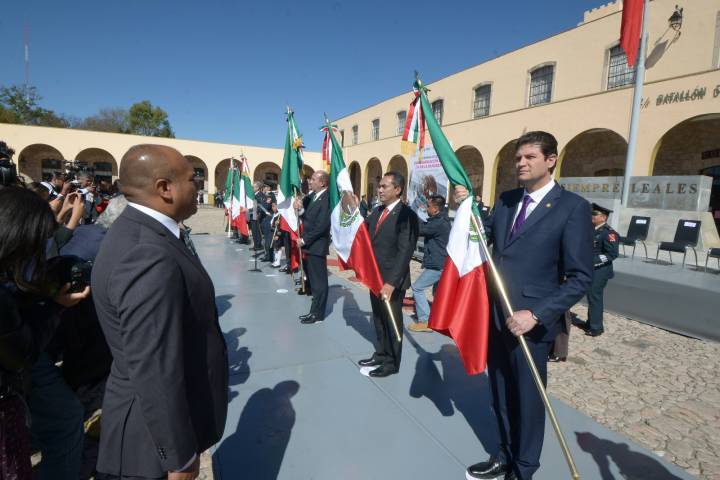 El Presidente Municipal de Morelia, Alfonso Martínez Alcázar encabezó este viernes la ceremonia de Izamiento conmemorativa al Día de la Bandera, misma que da arranque a los festejos por esta importante fecha histórica para los mexicanos, celebrando la creación de la Bandera creada en 1821.