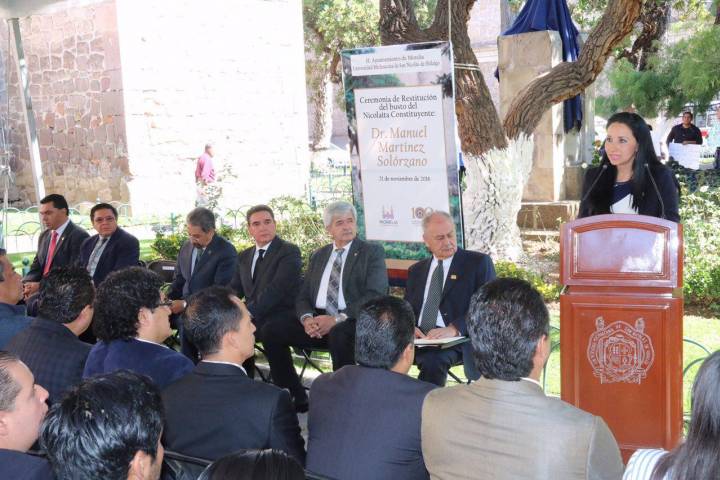NOTICIAS 21/11/2016Ayuntamiento restituye busto en espacio público de Morelia Con el compromiso de que esta sea tan solo la primera de varias acciones tendientes a promover y preservar los sitios y edificios pertenecientes al patrimonio cultural Morelia, el Ayuntamiento de Morelia, a través de la Comisión de Servicios Públicos, en conjunto con la UMSNH, realizaron este lunes la ceremonia de restitución del busto del nicolaita constituyente "Manuel Martínez Solórzano", ubicado en el Jardín de la Biblioteca Pública U... Ver más...