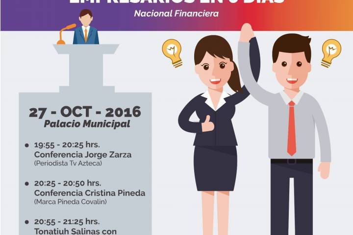 NOTICIAS 27/10/2016Destacadas personalidades impartirán conferencias sobre emprendimiento en Morelia Como parte de las actividades del programa "Día Morelia Emprende" celebrado el desde el pasado 26 y este jueves 27 del presente mes, el Ayuntamiento de Morelia, a través de la Secretaría de Desarrollo Económico y Emprendedor, abre espacios de aprendizaje para los jóvenes emprendedores que busquen obtener las herramientas para la apertura de un negocio y generar empleos en su sector.