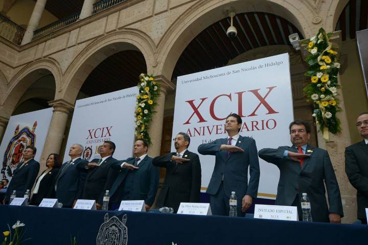 NOTICIAS 15/10/2016Asiste Alfonso Martínez al 99 Aniversario de la UMSNHEn el marco del Aniversario 99 de la Universidad Michoacana de San Nicolás de Hidalgo, el Presidente Municipal de Morelia, Alfonso Martínez Alcázar, acudió como invitado de honor al acto conmemorativo llevado a cabo este sábado en las instalaciones de la preparatoria Pascual Ortiz Rubio.
