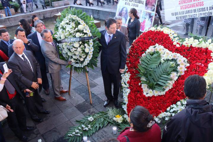 NOTICIAS 15/09/2016Alfonso Martínez y familiares rememoran a víctimas del 15 de septiembre En memoria de las Víctimas del 15 de septiembre de 2008, el Presidente Municipal de Morelia, Alfonso Martínez Alcázar, encabezó la mañana de este jueves, la colocación de la Ofrenda Floral en placa a los caídos que descansa en la Plaza Melchor Ocampo de esta ciudad.