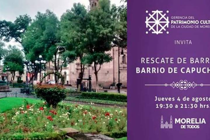 NOTICIAS 02/08/2016Rescate de Barrios, se realizará por partida doble en agosto La Gerencia del Patrimonio Cultural de Morelia realizará el programa "Rescate de Barrios" en dos lugares durante el presente mes de agosto, tanto en Capuchinas como en San Agustín, lo anterior fue anunciado por su titular, Gaspar Hernández Razo.