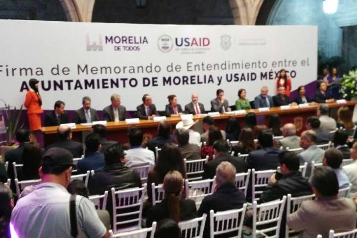 El presidente municipal de Morelia, Alfonso Martínez Alcázar firmó el convenio de entendimiento con la Agencia de Estados Unidos para el Desarrollo Integral (USAID), la cual trabaja a nivel internacional y en México tiene como objetivo formar una red de ciudades que trabajen unidas para crear acciones de prevención del delito.