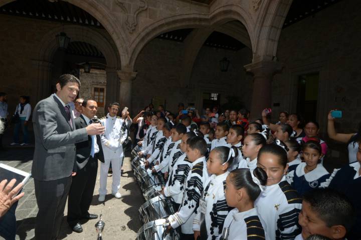 NOTICIAS 16/06/2016Convive Alfonso con niños de la Banda de Guerra "Águilas Michoacán"En el municipio se necesitan niños y jóvenes que destaquen en actividades educativas, cívicas, culturales o deportivas que los motiven para ser mejores personas en el futuro, así se pronunció el Alcalde de Morelia, Alfonso Martínez Alcázar, al recibir a los niños integrantes de la Banda de Guerrera "Águilas Michoacán" de la Escuela Primaria "Benito Juárez", provenientes de la comunidad de La Aldea.