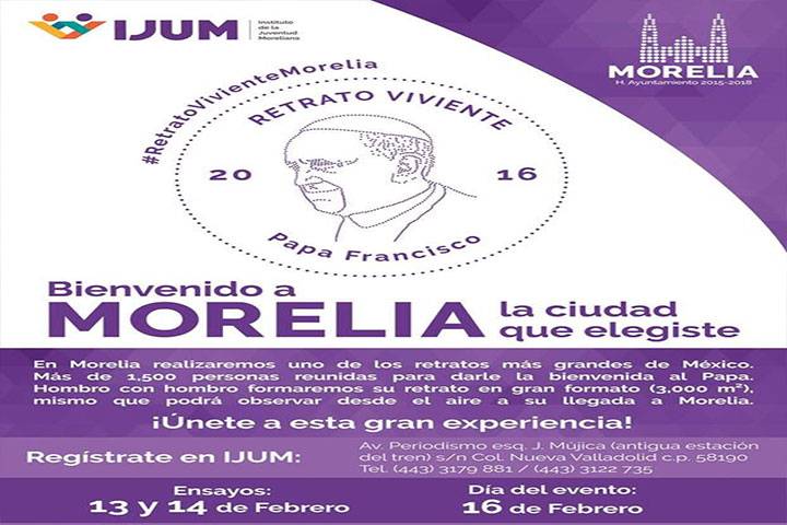 Con el propósito de facilitar el registro para la convocatoria del Rostro Viviente, el Instituto de la Juventud Moreliana habilitó un módulo en la Plaza de Armas, a un costado de Catedral, para que las personas que deseen participar en este evento que enmarca la llegada del Papa a Morelia, se integren a la formación de este retrato que podrá ser admirado por el jerarca Católico desde el cielo.