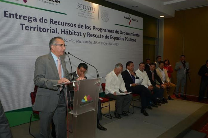 Comprometidos con fortalecer la política social y el desarrollo urbano del municipio, el Ayuntamiento de Morelia acudió al acto protocolario con el cual se hizo entrega simbólica de recursos de los Programas de Ordenamiento Territorial, Hábitat y Rescate de Espacios Públicos otorgado a municipios michoacanos, por parte de la Secretaría de Desarrollo Agrario, Territorial y Urbano (SEDATU) en el presente 2015.