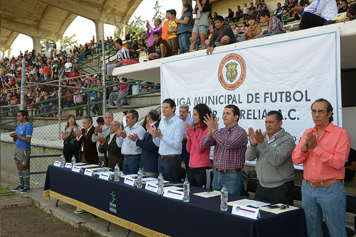 NOTICIAS 25/10/2015Inaugura Alfonso Martínez la Liga Municipal de Fútbol 2015-2016El presidente municipal de Morelia, Alfonso Martínez Alcánzar, presidió la mañana de domingo, la Inauguración de la Liga Municipal Amateur, temporada 2015-2016, celebrada en el Estadio Olímpico Venustiano Carranza.