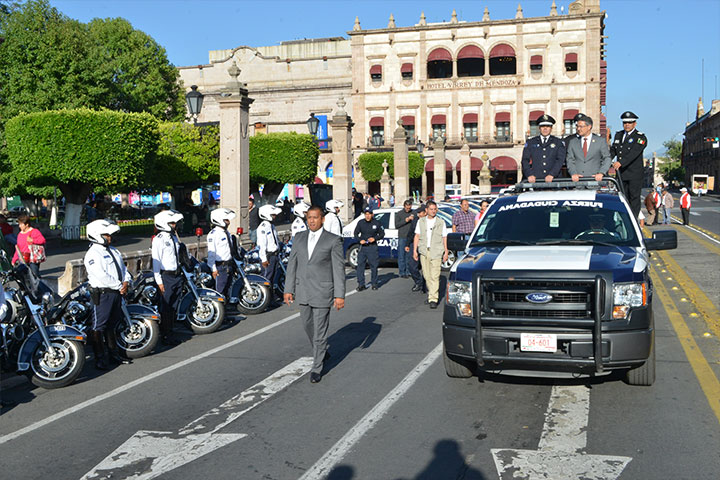 Con la entrega de equipamiento y 42 unidades automotoras a elementos de la Fuerza Ciudadana de Morelia, el Ayuntamiento capitalino cumple su compromiso de fortalecer la estructura operativa y hacer más eficientes los programas y estrategias del municipio en materia de seguridad pública, afirmó este sábado el presidente municipal, Salvador Abud Mirabent.