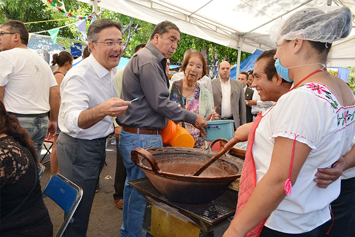 Con un recorrido por la zona gastronómica y la entrega de los trabajos de rehabilitación de la plaza principal de la colonia Santa María de Guido, el presidente municipal de Morelia, Salvador Abud Mirabent, encabezó la Feria del Mole que se realiza en el marco de la fiesta patronal que año con año atrae a miles de visitantes.