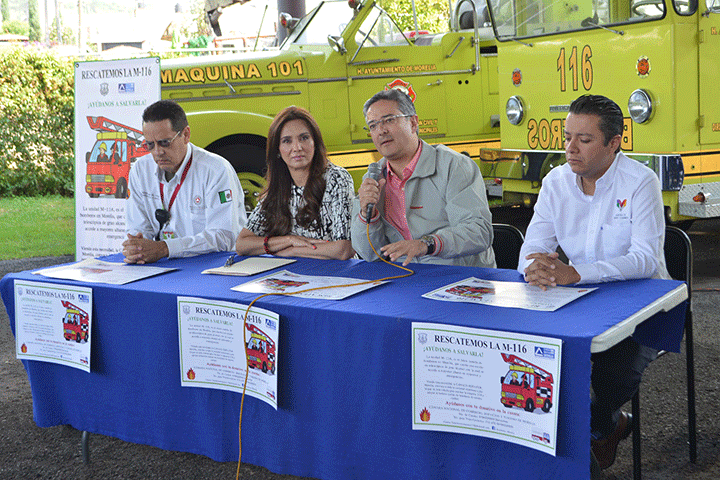 NOTICIAS 27/07/2015Rescatemos a la M116Con la participación de la CANACO Servytur Morelia, el Ayuntamiento que preside Salvador Abud Mirabent invita a la ciudadanía para que sume solidariamente a la colecta "Rescatemos a la M-116", con el fin de recaudar 250 mil pesos para restaurar el único camión de bomberos municipales con escalera telescópica, y así apoyar la heroica labor del cuerpo de rescatistas de la capital michoacana.