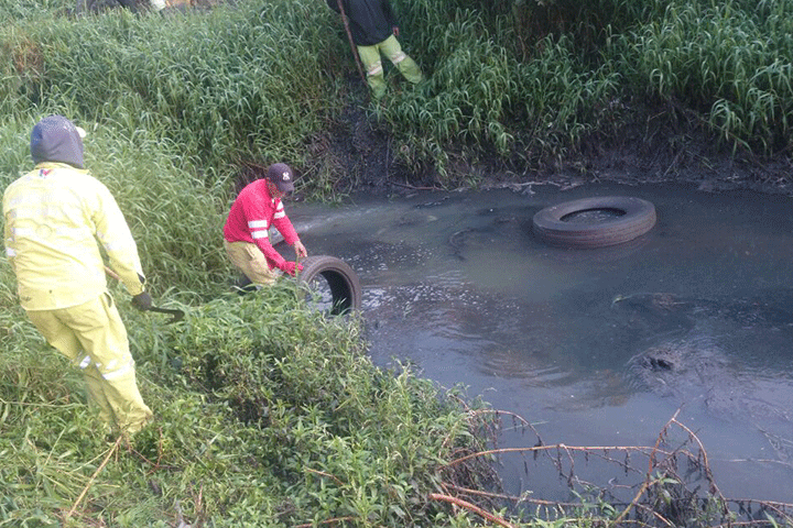 NOTICIAS 29/07/2015Limpieza en el Dren SalazarIntegrantes del Comité Interinstitucional de Contingencias realizaron la extracción de 25 llantas que fueron arrojadas al Dren Carlos Salazar. Por ello, Paulino Vázquez Martínez, director de Aseo Público municipal, informó que continuarán las labores de verificación de los generadores de residuos aledaños a la zona de dicho dren y una limpieza general en esta área.
