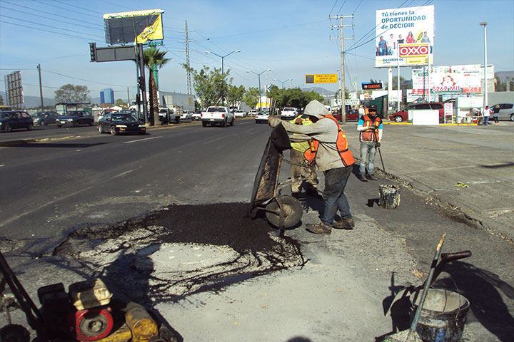 NOTICIAS 20/03/2015Refuerzan acciones de bacheo A fin de atender de inmediato las afectaciones viales que ocasionaron las lluvias durante el fin de semana pasado, el Ayuntamiento de Morelia, a través de la Secretaría de Obras Públicas, reforzó los trabajos de bacheo en diversos puntos de la ciudad, con el apoyo de nueve cuadrillas que trabajan los siete días de la semana, por lo que se prevé que al finalizar este mes se hayan aplicado 370 toneladas de mezcla asfáltica.