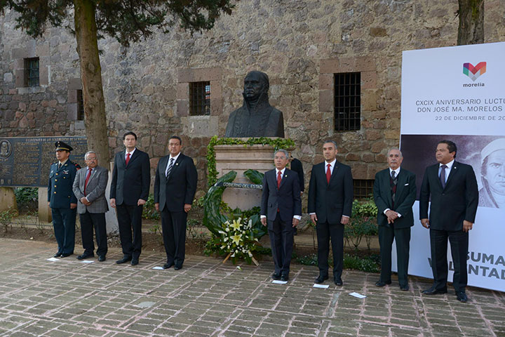NOTICIAS 22/12/2014Conmemoran aniversario luctuoso de José María MorelosEl presidente municipal de Morelia, Wilfrido Lázaro Medina, encabezó la ceremonia de depósito de ofrenda floral y la guardia de honor con motivo del CXCIX aniversario luctuoso de Don José María Morelos y Pavón, la mañana de este lunes en la Casa Natal del Siervo de la Nación.