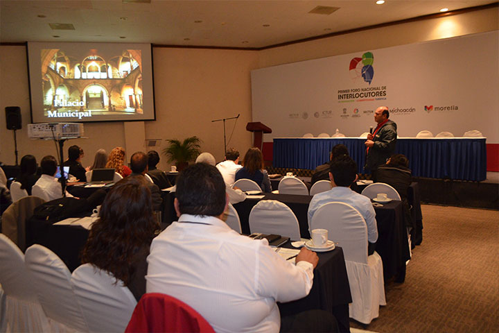 NOTICIAS 20/11/2014Morelia presente en el Foro Nacional de InterlocutoresEn el marco del Primer Foro Nacional de Interlocutores en Innovación y Competitividad Turística de se realiza en la capital michoacana, el Ayuntamiento de Morelia formó parte del programa que incluía ponencias y testimonios en materia turística.