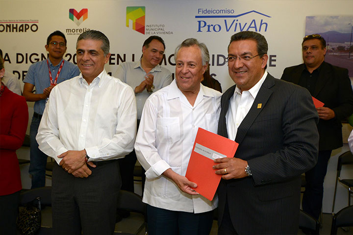 NOTICIAS 14/11/2014Entregan federación y municipio bonos para vivienda a familias morelianasEl Plan Michoacán sumado con la voluntad de la administración del presidente municipal de Morelia, Wilfrido Lázaro Medina, sigue respondiendo al compromiso de mejorar la calidad de vida de las familias más vulnerables de la capital Michoacana. A través de la mezcla de recursos entre federación, municipio y beneficiarios, este viernes fueron entregados bonos para la adquisición de 140 viviendas sociales en beneficio del mismo número de fam... Ver más...