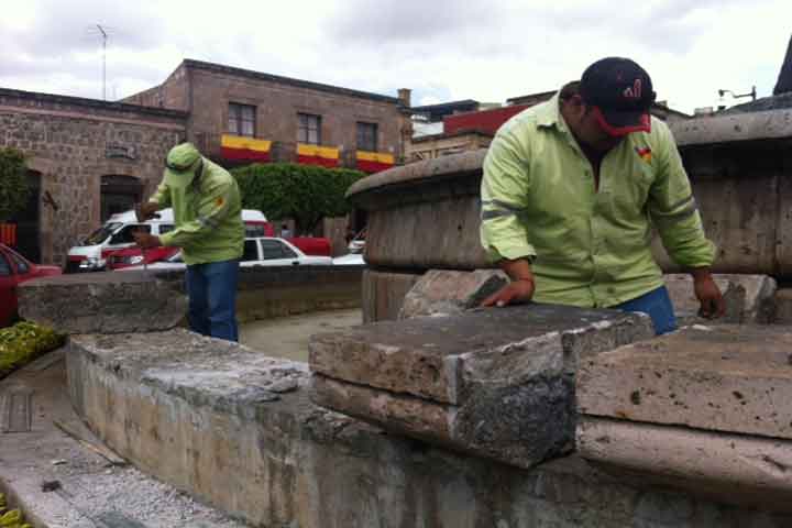 NOTICIAS 29/05/2014Dan mantenimiento a la Fuente de las TarascasCon el propósito de embellecer las áreas verdes de la ciudad y mantener en buen estado los sitios emblemáticos del Centro Histórico, el Ayuntamiento de Morelia, a través de la Secretaría de Servicios Públicos, realiza trabajos de rehabilitación en la Fuente de las Tarascas y en el Jardín Villalongín, reforzando con estas acciones los ejes por un Morelia Verde y con Mejores Servicios, que forman parte del Plan Desarrollo Municipal del pr... Ver más...