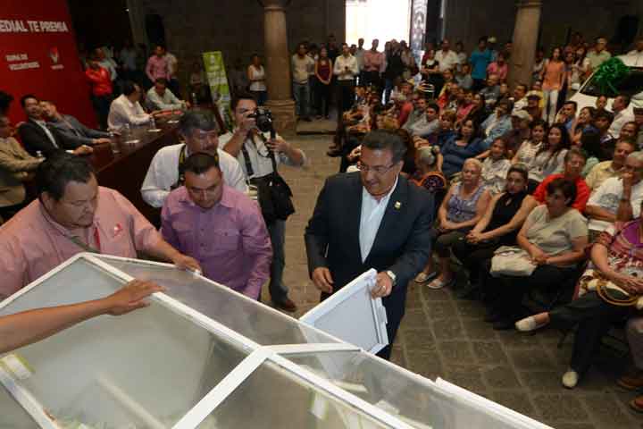 NOTICIAS 14/04/2014Ayuntamiento premia a morelianos cumplidos El Ayuntamiento de Morelia que preside Wilfrido Lázaro Medina, en reconocimiento a los ciudadanos que cumplen cabalmente con el pago de sus impuestos, realizó este lunes el sorteo "Tu Predial te Premia 2014", que otorgó 27 regalos, entre departamentos, automóviles, mini iPads, televisores y refrigeradores.