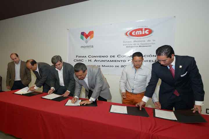 NOTICIAS 11/03/2014CMIC y Ayuntamiento firman convenio de aportaciones y capacitación La Delegación en Michoacán de la Cámara Mexicana de la Industria de la Construcción y el Ayuntamiento de Morelia, firmaron el Convenio de Aportaciones y Capacitación.