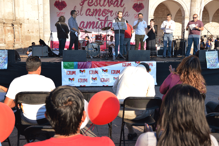 NOTICIAS 15/02/2014Chavos en el Festival con motivo del Día de San ValentínEn un ambiente sano, de fiesta y cordialidad, el Instituto de la Juventud Moreliana (IJUM) celebró a este sector de la población, por el Día de San Valentín con el Festival del Día del Amor y La Amistad en la Plaza Valladolid de la capital michoacana.